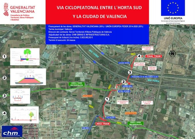 Esta actuación se enmarca en la estrategia de la Conselleria de vertebrar el territorio. En este sentido, como ha indicado Arcadi España, se ha promovido, entre otras actuaciones, "un Anillo Verde Metropolitano para peatones y ciclistas, con un carácter medioambiental y funcional que se desarrolla tanto en la comarca de l'Horta Nord como en la de l'Horta Sud pivotando respecto del eje central que es la ciudad de València".