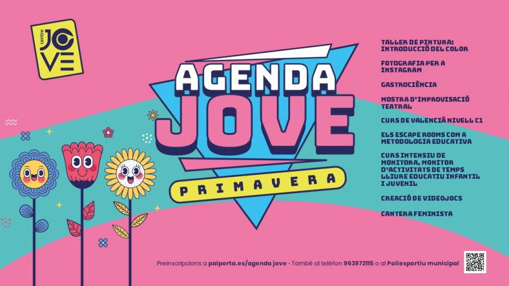 La Concejalía de Juventud del Ayuntamiento de Paiporta acaba de iniciar la inscripción para la Agenda Joven de primavera 2022, la compilación de actividades lúdicas y formativas del Centro Joven para los próximos meses. Entre la oferta, destacan talleres cómo el de pintura, fotografía para Instagram, c gastrociència, creación de videojuegos y cantera feminista, mientras que en el aspecto formativo, hay convocados cursos de valenciano para el nivel C1, escapo rooms como metodología educativa, y un curso intensivo de monitor o monitora de tiempo libre.