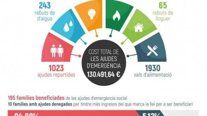 Una vez realizado un estudio para abordar todos los gastos sociales derivados para ayudar a las personas más necesitadas, desde el consistorio se han hecho públicas las cifras para dar a conocer los fondos destinados en esta materia. Así, se abonaron un total de 130 491.64 euros en ayudas sociales destinadas a paliar las necesidades más básicas de 195 familias del municipio. Además, se concedieron 1 023 ayudas y solo se denegaron 10 para superar el mínimo de ingresos establecidos.