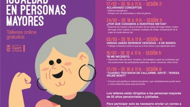Ahora, gracias al trabajo transversal entre el área de Mayores e Igualdad, se ha puesto en marcha un nuevo taller destinado a personas de más de 55 años. Bajo el título "Mejor tarde que nunca, porque la igualdad no tiene edad", durante seis sesiones online se tratarán diferentes cuestiones centradas en romper con los estereotipos y los roles de género, dar valor a las labores domésticas, profundizar en la idea de amor romántico o saber cómo reaccionar ante situaciones de riesgo.