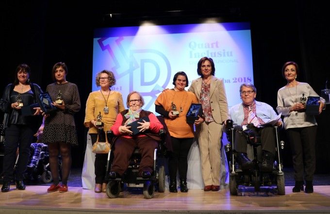 Los premios Qusiba se integran en la programación que en torno al 3 de diciembre, Día Internacional de la Discapacidad, organizan las asociaciones locales centradas en este colectivo ciudadano. Todas ellas, unidas en un objetivo común: alcanzar la plena inclusión, recogieron ayer el premio Qusiba 2018. Son Aprodis, Lluerna, Afaco, el Patronato Intermunicipal Francisco Esteve y la propia Qusiba, cuyo presidente, Vicente Gascón explicó que estos galardones nacieron hace 16 años con el objetivo de “sensibilizar a la sociedad, también a nuestro colectivo, para que se hiciera más visible”. En su intervención, abogó por “cambiar el paternalismo por una etapa de igualdad de oportunidades y no discriminaciones”.