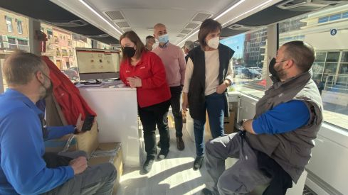 La alcaldesa de Quart de Poblet, Carmen Martínez, ha visitado el centro de información móvil acompañada por el director de la Oficina Labora del área, Francisco Lapuente, y por el concejal de Empleo, Ángel Lorente. Martínez ha estado hablando con varias de las personas que se han acercado al autobús y se ha interesado por la situación laboral y personal que atraviesan. Gracias al asesoramiento allí recibido, y tras descargarse la app de Labora, varios de ellos se han enterado de ofertas de trabajo en el propio municipio, como la de una empresa quartera que necesita torneros.