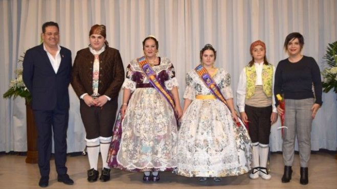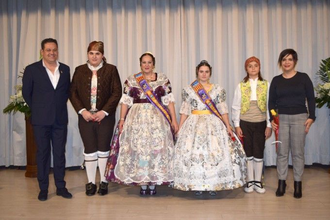 El Salón de Actos de la Biblioteca Municipal acogió en la tarde del sábado la presentación de la Asociación Cultural Falla Isabel de Villena en la que se llevó a cabo la exaltación de las falleras mayores Rosa Vila y Sofía Guillem, acompañadas del presidente Diego López y el presidente infantil Albert Cano.