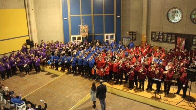 El pasado sábado, el Museo de Semana Santa fue el escenario del Certamen Solidario de Cornetas y Tambores a beneficio del Economato. En dicho acto participaron las hermandades de la Santa Faz, Virgen de los Dolores, Jesús Nazareno, Negaciones de Pedro y Santa Cena exhibiendo todo el trabajo que vienen realizando durante gran parte del año, siendo la banda sonora de la Semana Santa torrentina año tras año. Disfrutando de este concierto junto al público que llenó el Museo estaba la Reina del Encuentro, Gemma Torrent, junto al alcalde Jesús Ros y el concejal del Área de Cultura, Alfred Costa.