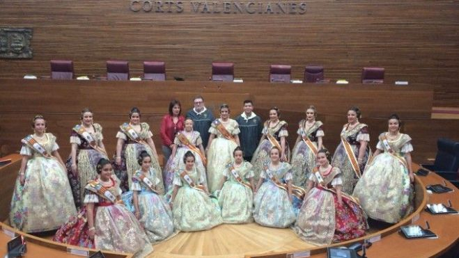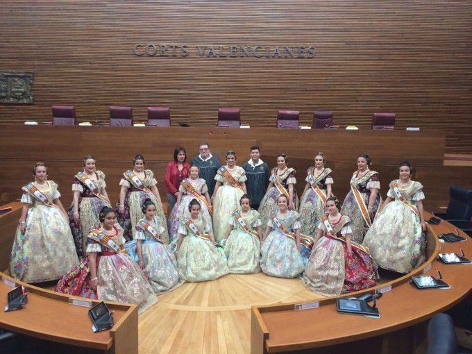 Las falleras mayores de Torrent, María Jesús Rincón y Alexia Manzano, con sus cortes de honor, han realizado esta mañana una visita institucional a las Cortes Valencianas donde han sido recibidas por la vicepresidenta primera de las Cortes y alcaldesa de Quart de Poblet, Carmen Martínez. En compañía del alcalde Jesús Ros y el regidor del área de Fallas, José Antonio Castillejo, las falleras mayores e infantiles han conocido el Palacio de Benicarló, sede de las Cortes y algunas de sus dependencias, como el hemiciclo.