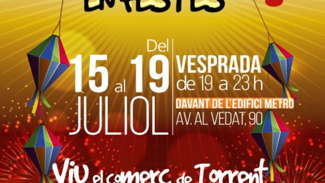 El Ayuntamiento de Torrent, a través de la empresa municipal Idea't, ha preparado una campaña para promocionar el comercio como anticipo a las fiestas patronales. Por ello, del 15 al 19 de julio frente al Edificio Metro, el comercio torrentino expondrá en las casetas instaladas en la Avinguda al Vedat una variedad de sus productos y servicios. En esta feria del comercio se contará con la colaboración de ACS Torrent y Torrent Comercial. El horario será de 19:00h a 23:00 horas para que todas y todos los visitantes puedan disfrutar de la fiesta, la noche, y del comercio.