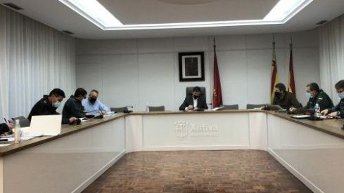 El Ayuntamiento de Xàtiva ha albergado esta mañana una reunión para coordinar el dispositivo de cierre perimetral de la ciudad, en la que han participado los responsables de los diferentes cuerpos y fuerzas de seguridad del Estado presentes en Xàtiva (Guardia Civil, Policía Nacional y Policía Local), así como también el alcalde de Xàtiva Roger Cerdà, el regidor de Seguridad Ciudadana Juan Giner y el regidor de Servicios Públicos Ricardo Martínez.