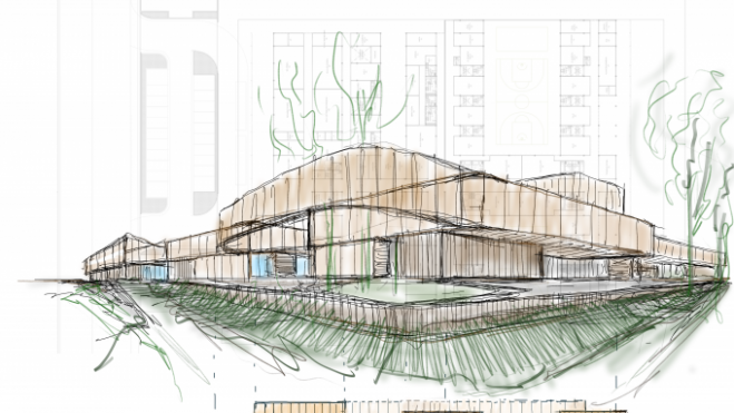 El edificio se agrupará en diferentes bloques organizados en torno a un pasillo central y con capacidad para 130 alumnos. La disposición, en forma de peine, facilitará los recorridos y los accesos independientes para cada uno de los bloques, así como maximizará la posibilidad de orientar los espacios docentes al sur para facilitar la iluminación y la ventilación natural a lo largo de todo el centro, generando una serie de patios exteriores que permiten su uso independiente según el caso.