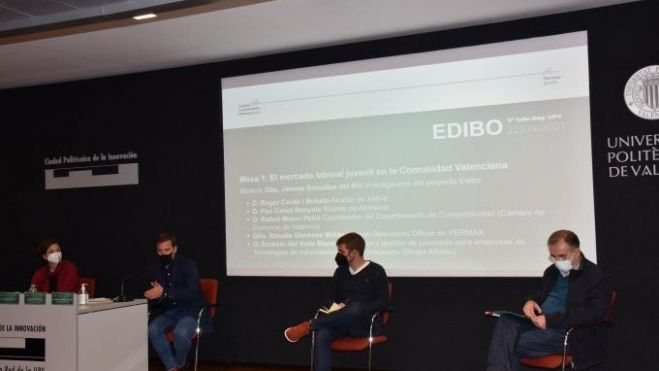 El alcalde de Xàtiva Roger Cerdà ha intervenido en la mesa redonda dedicada al mercado laboral juvenil en la Comunidad Valenciana junto con el alcalde de Almisserà Pau Canet, el coordinador del departamento de Competitividad de la Cámara de Comercio de València Rafael Mossi, la encargada de Recursos Humanos de FERMAX Rosalía Giménez y el Director y Gestor de Personas para las empresas del grupo Alfatec Ernesto del Valle.