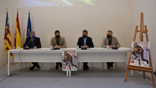 Este jueves ha tenido lugar en la Diputación de València la presentación del campeonato de España de Ciclocross que tendrá lugar en Xàtiva los próximos días 7, 8 y 9 de enero de 2022, y en la que han estado presentes el diputado de Deportes Andrés Campos, el alcalde de Xàtiva Roger Cerdà, el presidente de la Federación de Ciclismo de la Comunidad Valenciana Amadeo Olmos, el organizador de la cita a través del club «Bicicletas Sanchis» Salvador Sanchis y el regidor de Deportes de Xàtiva Pedro Aldavero.
