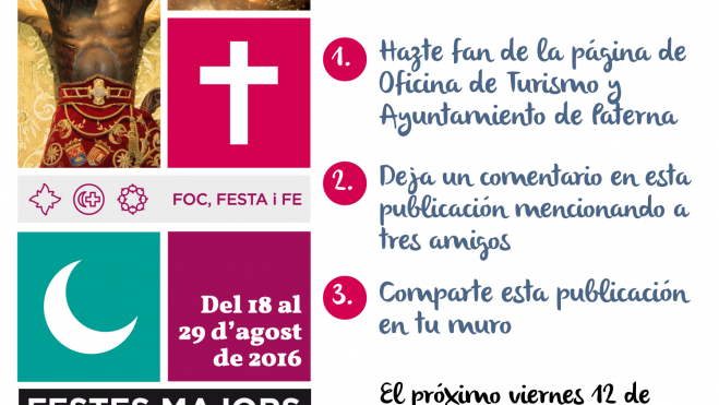 La Oficina de Turismo de Paterna ha organizado un concurso, a través de las redes sociales, para sortear un Libro de Fiestas y dos asientos en primera fila para la Gran Noche Cristiana y Mora.