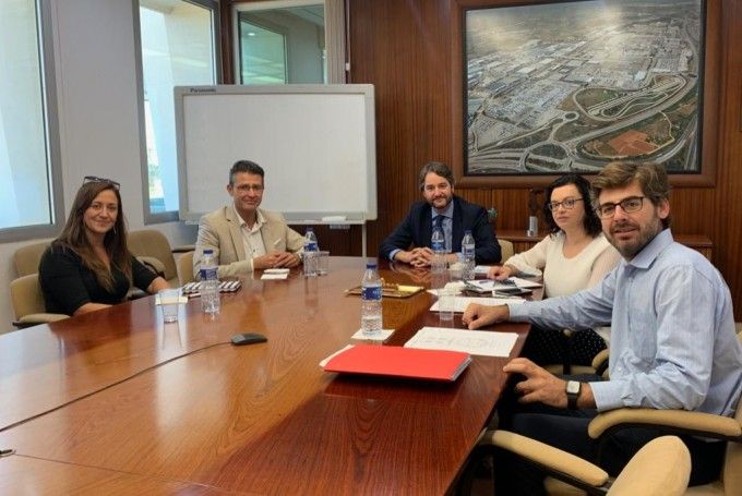 El presidente del ejecutivo de Almussafes, Toni González, mantuvo ayer martes, 24 de septiembre, su primer encuentro de la legislatura con representantes de la Factoría Ford, con el objetivo de departir sobre la situación actual a la que se enfrenta el sector de la automoción, en plena transformación tecnológica y digital, y de la estrategia de política industrial impulsada desde el ayuntamiento. El alcalde estuvo acompañado por la gerente de l’Associació de Parcs i Polígons Industrials Ribera Baixa, Romina Moya, en la reunión mantenida con el director de Relaciones Institucionales de la planta, Fernando Acebrón, la responsable de Análisis de Inversiones, Mabel Martínez, y el abogado, José M.ª Beneyto.