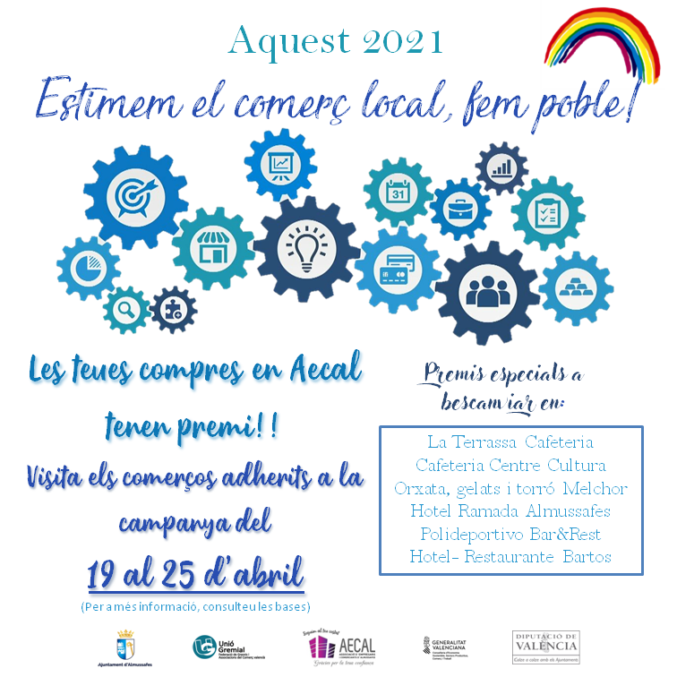 Las personas mayores de edad que adquieran productos y servicios en negocios adheridos a la Asociación de Empresarios y Comerciantes de Almussafes (AECAL) del 19 al 25 de abril pueden conseguir numerosos premios gracias a la nueva campaña de promoción del pequeño comercio desarrollada por esta agrupación. La entidad continúa con el fomento de la adquisición de bienes y servicios en este tipo de establecimientos y lo hace con una iniciativa a la que han denominado ‘Estimem el comerç local’ y que se implementará a lo largo de todo este 2021.