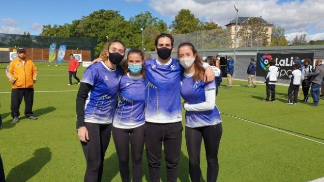 El pasado fin de semana el Club de Tiro con Arco de Almussafes volvió a demostrar que continúa siendo uno de los más destacados de todos los que participan en competiciones oficiales. Los y las integrantes de la entidad se trasladaron el sábado y el domingo hasta el Centro de Tecnificación de Madrid para disputar la fase final de la Liga Nacional de Clubs, en la que el equipo femenino almussafense, formado por Nerea López, Júlia Galera y Àngels Alcaraz, consiguió la medalla de oro. Nerea López, además, alcanzó también el bronce junto a Emi Lucha en equipos mixtos. Por su parte, el equipo masculino, que en esta ocasión estaba compuesto por Marcos López, Emi Lucha y Carlos Ramón, finalizaron los ejercicios firmando un destacado quinto puesto.