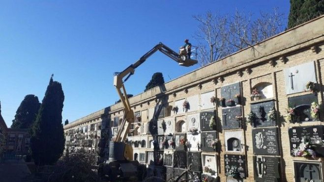"Se trata de una actuación reivindicada desde hace muchos años por los usuarios y las usuarias del cementerio que tienen a sus seres queridos en esta zona. Con la tala de estos árboles, además de evitar las molestias que ocasionaban las ramas que llegaban a caer en las calles internas del cementerio, hemos conseguido que se pueda acceder a estos pasadizos internos, hasta ahora inutilizados, descubriendo y limpiando la zona, evitando así que se puedan producir más daños en la cubierta de la estructura de los bloques de nichos", ha explicado el concejal de Servicios Municipales, Joan Carles Vázquez.