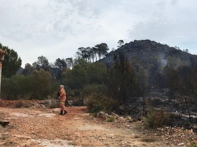 Los bomberos continúan con las labores de extinción en las zonas afectadas de Llutxent, Pinet, Ador, Barx, Quatretonda y Gandia, que es la zona donde las llamas más superficie han calcinado.