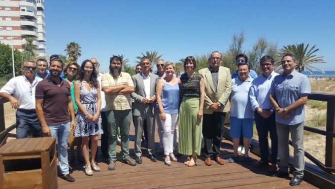 La alcaldesa de Gandia, Diana Morant acompañada por Pilar Moncho, diputada de Turismo y vicepresidenta del Patronat de Turisme de València; Antonio Cejalvo, jefe de la Demarcación de Costas; y los concejales Miguel Ángel Picornell y Xavier Ródenas, han visitado esta mañana la pasarela de peatones "Sender Blau" que ha sido reformada gracias a una subvención de 125.000 euros incluida dentro del Plan de Infraestructuras Turísticas del Patronato de Turismo de Valencia.
