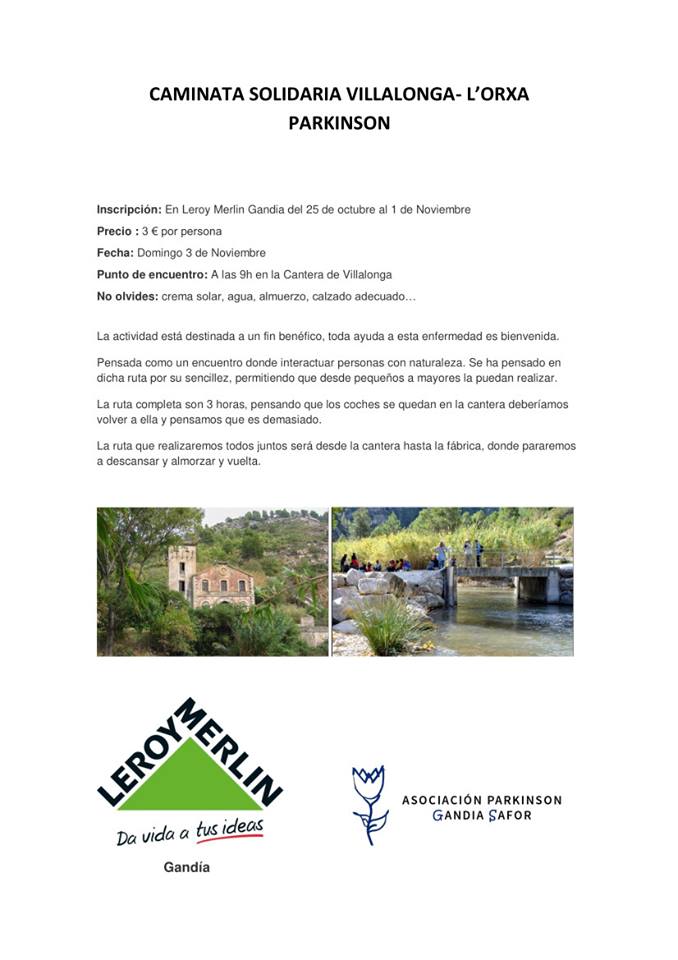 Leroy Merlin Gandia quiere poner su granito de arena realizando una caminata solidaria cuyos beneficios irán destinados a la Asociación del Parkinson Gandia Safor.
