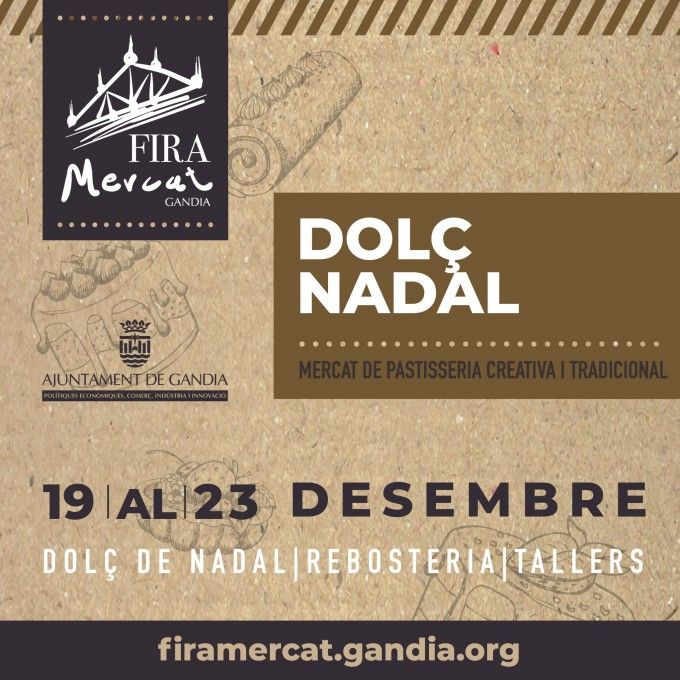 El regidor delegado de Políticas Económicas y Comercio, Ferran Martínez Mendoza, ha presentado esta mañana una nueva edición de Feria Mercado Gandia. “Dolç Nadal”, la penúltima de las 10 ferias temáticas de esta primera etapa, tendrá lugar durante cuatro días y medio, del 19 al 23 de diciembre y girará alrededor de los dulces, repostería y productos típicos de estas fiestas. “Es una de las ferias con mayores expectativas de éxito, puesto que la oportunidad, la época, juega a nuestro favor”.