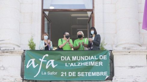 Después de la lectura del manifiesto, la alcaldesa de Gandia, Diana Morant; acompañada por la concejala delegada de Sanidad, Liduvina Gil; la presidenta de AFA la Safor, Rosa Genís; así como los portavoces de las fuerzas políticas representadas en el consistorio, ha procedido a colgar del balcón del consistorio una pancarta conmemorativa destinada a visibilizar la enfermedad.