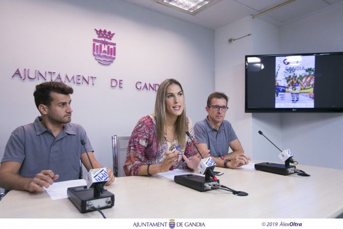 La regidora delegada de Deportes, Lydia Morant, acompañada de Arturo Navarro i Alejandro Gómez, directores de Seguridad y técnico de la prueba respectivamente, han presentado esta mañana la Ican Triatlón Gandia 2019 que se disputará el próximo sábado 19 de octubre y saldrá y llegará a la plaza del puerto (zona Varadero).