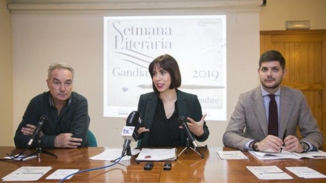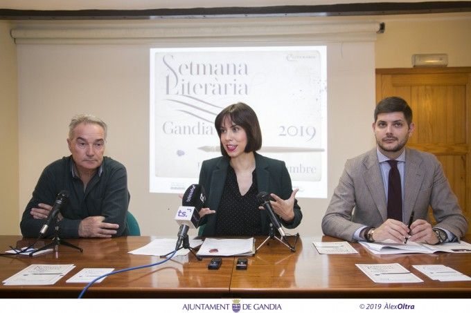 La alcaldesa de Gandia, Diana Morant; el regidor delegado del IMAB, Jose Manuel Prieto; y Àlvar Garcia, han presentado esta mañana en la Biblioteca Central la programación de actividades que se ha organizado desde el consistorio con motivo de la Semana Literaria. Del 8 al 24 de noviembre se ha programado presentaciones de libros, conferencias, representaciones teatrales o proyección de películas además de la Gala de los Premios Literarios que tendrá lugar el 22 de noviembre al Teatro Serrano, a las 20 horas, donde se otorgarán el LVII Premio Ausiàs March de Poesía, XLI Premio Joanot Martorell de Narrativa y III Premio Joan Roís de Corella a la trayectoria literaria. El acto finalizará con el espectáculo Teatral Tirant.