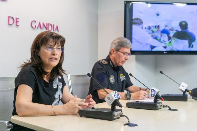 Àngels Pérez, regidora de Seguridad y el Intendente Principal Jefe de la Policía Local de Gandia, Marc Cuesta, han comparecido esta mañana en rueda de prensa para informar de las medidas que ha tomado el ejecutivo municipal ante la proliferación de los patinetes eléctricos y recordar sus normas de uso.