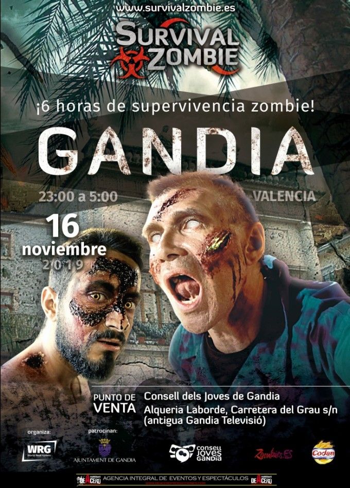 El juego empieza a partir de las 23:00 horas con una escena inicial, que tendrá lugar en la plaza rey En Jaime I. Los participantes tendrán que acudir ese día unas horas antes al check-in situado en el Centro cívico Roís de Corella para recibir su mapa, su cartilla de sellos y su braga verde que los identifica como jugadores de Survival Zombi (roja para los zombis y amarilla para la organización).