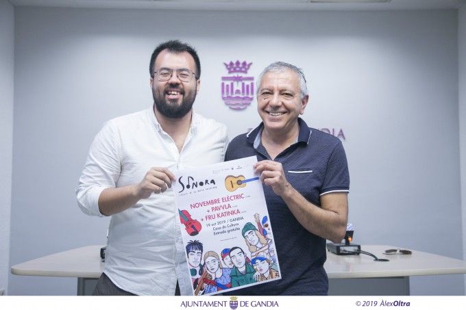 Las formaciones valencianas Noviembre Eléctrico y Fru Katinka y la solista catalana PAVVLA actuarán el próximo sábado, 19 de octubre, en la Casa de Cultura Marqués de González de Quirós de Gandia con entrada gratuita. Los conciertos se enmarcan en la programación de Sonora, circuito musical valenciano, que el Instituto Valenciano de Cultura (IVC) estrena en Gandia, y que está protagonizado por los ganadores y finalistas de los I Premios Carles Santos de la Música Valenciana. Lo ha anunciado esta mañana el regidor de Cultura, Nahuel González, acompañado del técnico de Cultura y programador musical municipal, Eudald González.