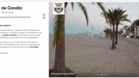La playa de Gandia ve recompensada su enorme implicación en la gestión de la calidad de sus servicios y medidas establecidas para garantizar la seguridad y salud en sus playas con el premio Travellers Choice 2020’ otorgado por el portal de viajes Trivago.