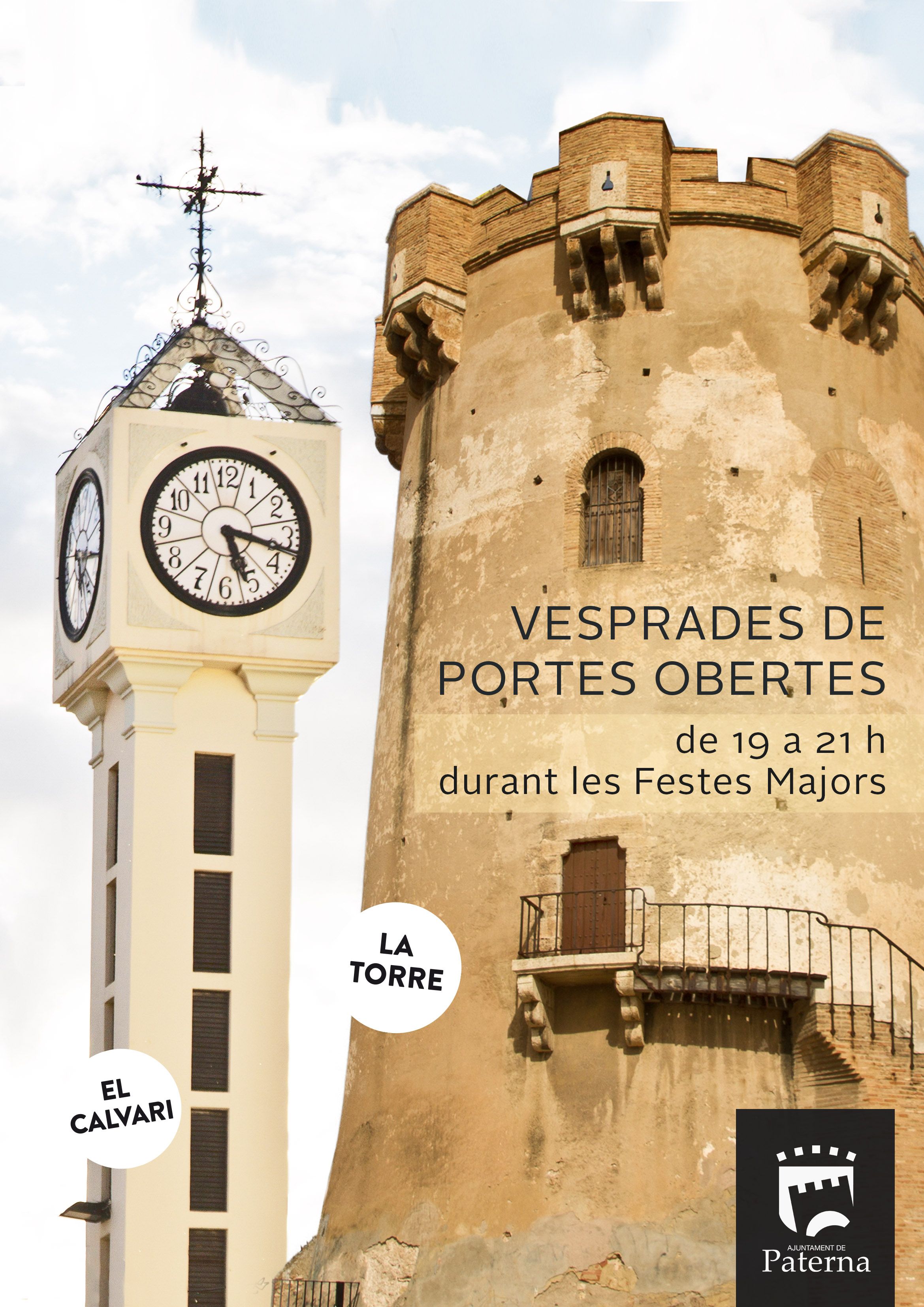 Además, del 23 al 27 de agosto también en horario de 19 a 21 horas, La Torre de Paterna estará abierta al público en general. La Concejala de Tradicions, Cultura i Foc, Paqui Periche, ha señalado que la iniciativa de abrir El Calvario y La Torre al público viene respaldada por la gran acogida que tuvieron las jornadas de puertas abiertas del pasado mes de julio, en las que, tal y como ha informado “más de 300 personas se acercaron a conocer el nuevo estado del monumento tras los trabajos de rehabilitación”. Además, la concejala también ha destacado el compromiso del Ayuntamiento por potenciar este enclave patrimonial, y en ese sentido abrir sus puertas durante las Fiestas Mayores, “permitirá darlo a conocer tanto a los paterneros y paterneras, como a vecinos de otras localidades que cada año nos visitan durante las fiestas”.
