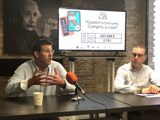 "Tenemos que estar muy satisfechos, porque con los cheques consumo Tornem Junts Ontinyent está marcando el camino también en materia de promoción de la economía local". Así lo manifestaba hoy el Alcalde de Ontinyent, Jorge Rodríguez, en una rueda de prensa junto al regidor de Promoción Económica, Pablo Úbeda, en la cual valoraban los últimos datos de la campaña "Quédate en Ontinyent, compra en casa", una de las iniciativas incluidas en el plan municipal de reactivación de la economía ante la crisis de la Covid-19.