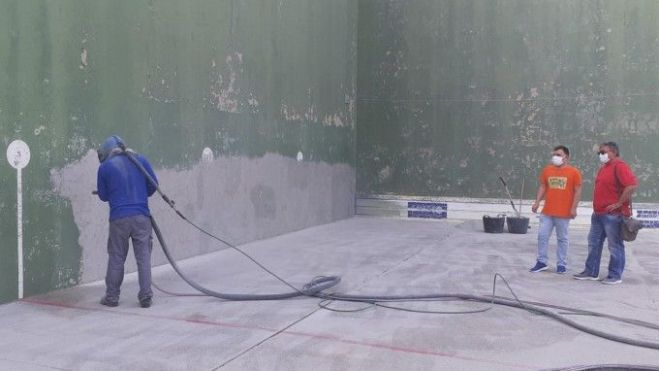 Por otro lado, Óscar Borrell ha visitado las obras que están ejecutándose al espacio de tiro con arco del polideportivo municipal, ubicado al frontón viejo. La intervención, presupuestada en cerca de 20.000 euros, se incluye en el Plan de Obras y Servicios "Volvemos Juntos", activado por el gobierno de Ontinyent para apoyar a las empresas locales al mismo tiempo que se mejoran diferentes espacios públicos. En este caso, la actuación está siendo ejecutada por la empresa Andrés Garcia.Borrell explicaba que se trata de una reparación integral en una zona del polideportivo dónde desde la década de los 70 no se había intervenido a gran escala, con una intervención que eliminará la pintura y los bostezos al muro, que será repintat, así como eliminación de óxido en la red metálica, mejora de uno de los pilares y creación de una rampa que permitirá el acceso a personas con diversidad funcional y también facilitará el acceso de vehículos para futuros trabajos de mantenimiento.