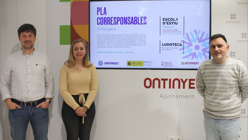 Así, con el Plan Corresponsables va a ponerse en marcha 4 escuelas de verano con 350 plazas, una ludoteca, y va a redactarse el primer plan de conciliación de la ciudad de Ontinyent. En cuanto a la primera ludoteca municipal de Ontinyent, se pondrá en marcha en junio para niñas y niños de 2 a 14, en el Parque del Maestro Ferrero con horario ininterrumpido, "un recurso gratuito que incluirá actividades inclusivas, lúdicas, socioeducativas y culturales con una visión pedagógica que potencio la educación en valores y el desarrollo integral de las niñas y niños".