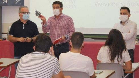 Jorge Rodríguez, que acudía acompañado por el regidor de Educación Óscar Borrell y el Director del Campus, José Cantó, explicaba que "es un inicio de curso muy especial, al cual hemos querido dar la bienvenida al alumnado, explicar qué infraestructuras y servicios tienen a su alcance, y tener un detalle desde la Fundación-integrada por la Universidad de Valenciano, el Ayuntamiento, Caja Ontinyent, asociaciones empresariales y sindicatos- con la entrega de estas mascarillas, con las que además valoramos la tarea de las empresas locales integradas al Clúster Textil Sanitario", señalaba.