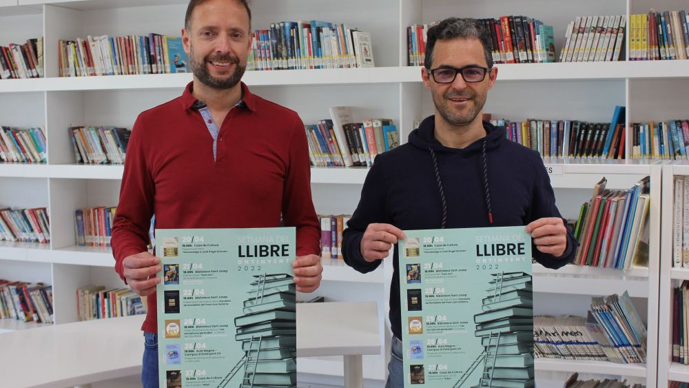 Los concejales de Cultura y Biblioteca del Ayuntamiento de Ontinyent, Àlex Borrell i Ferran Gandia, presentaban este jueves la programación de la "Semana del Libro 2022", que incluirá 4 presentaciones de libro y 2 actividades infantiles entre el 20 y el 27 de abril.