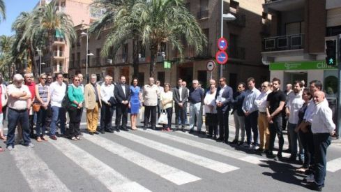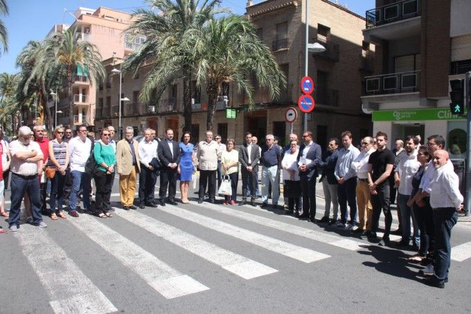 En la concentración han estado presentes los grupos políticos y trabajadores del Ayuntamiento, el alcalde Jesús Ros y alcaldes y alcaldesas de la comarca. Además, se ha colgado en la fachada del consistorio un crespón negro junto a la bandera LGBT en señal de duelo por los fallecidos.