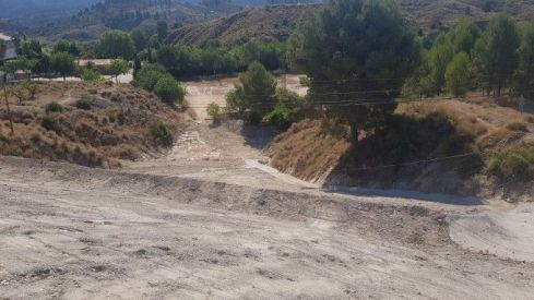 La plataforma superior de la zona de vertido se había desarrollado con los años sobre un barranco al sur del cementerio, en el que se habían ido vertiendo residuos inertes, tales como materiales de construcción, rocas, escombros sin clasificación, gravas o limos. Estos vertidos habían avanzado sobre la pendiente del barranco cubriéndolo parcialmente y generando un talud de escombros de 18 metros de altura y 23 metros de desarrollo horizontal, ocupando parte de una vaguada natural.