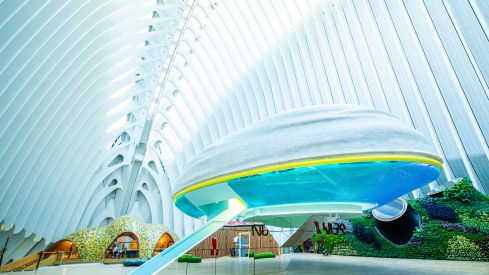 El proyecto de Enric Ruiz-Geli crea un mundo de células vivas en el interior del edificio. El arquitecto lo describe como un paisaje conformado por espacios interconectados en un ecosistema protector.