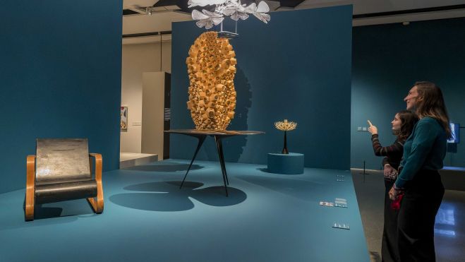 La muestra presenta una selección de primer nivel de obras del siglo pasado de todas las disciplinas, pintura, escultura, fotografía, arquitectura, cine y diseño, en la que se incluyen nombres como Salvador Dalí, Raoul Hausmann, Vasily Kandinsky, Le Corbusier, Alvar Aalto, Alberto Giacometti, Jean Arp, Alexander Calder, Georgia O’Keeffe y Max Ernst, entre muchos otros, con una presencia importante de artistas de las últimas décadas que han aportado nuevos puntos de vista comprometidos como Neri Oxman.