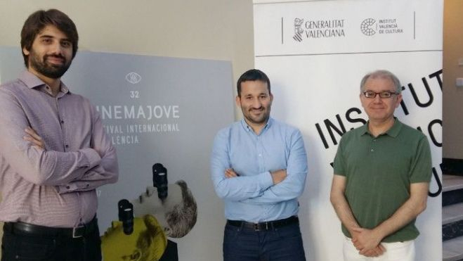El conseller de Educación, Investigación, Cultura y Deporte, Vicent Marzà, ha presentado la programación de Cinema Jove 2017 acompañado por el director general del Institut Valencià de Cultura, Abel Guarinos, y el director del festival, Carlos Madrid.