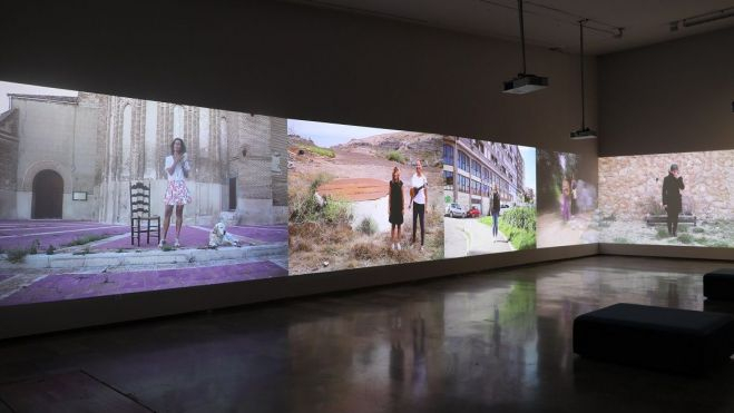 La exposición ‘De coros, danzas y desmemoria’ fluctúa en torno a cinco ejes: la historia, las cantantes, el tipo de canto, la localización (las grabaciones se realizaron en los lugares donde ocurrieron las historias) y, en paralelo, la situación personal de las creadoras como artistas-gemelas-mujeres.