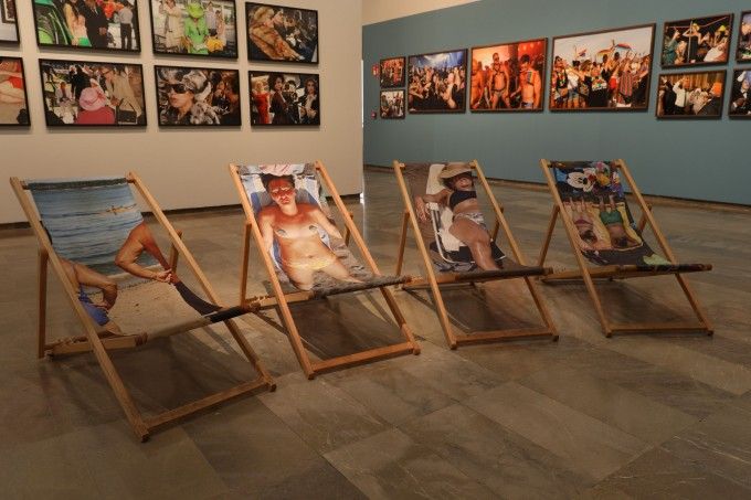"Sus imágenes suelen divertir, pero también incomodar, porque lo que muestran es nuestro reflejo", destacaron José Luis Pérez Pont y Nacha Soler. Hace unos años, antes de que la pandemia pusiera cabeza abajo este modelo de mundo, Martin Parr decía en una entrevista: "Las nuevas clases medianas y el impacto de su estilo de vida sobre el medio ambiente harán más daño incluso que la guerra y el hambre. Tú y yo somos los primeros culpables, con nuestros coches y nuestras vacaciones".Acompañando estas series, la exposición presenta una instalación formada por 14 hamacas con imágenes impresas de Martin Parr sobre la playa, el turismo y el consumo y una señal del artista que invita a fotografiarse junto a estas.