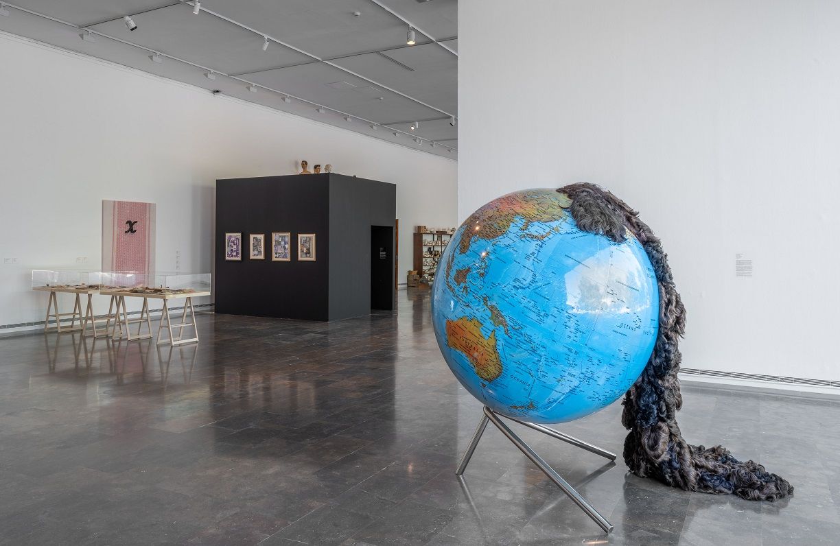 En la nave central de la galería 1 los visitantes encontrarán por primera vez una recreación del taller de Carmen Calvo y un cuarto oscuro que reproduce fragmentos de filmes que la artista revisionó durante la pandemia. La muestra hace un recorrido por sus trabajos con la escultura, los objetos y los cuerpos (las muñecas, las figuras de cera y los maniquíes son parte indisociable del imaginario creativo de Carmen Calvo), sus imágenes fotográficas intervenidas y algunas de las inquietantes obras donde el cabello, símbolo de la identidad de la mujer, se exhibe con descaro.