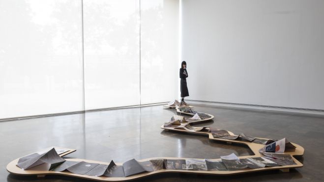 La exposición, coproducida junto al Artium Museoa (Vitoria-Gasteiz), está formada por una veintena de obras, entre ellas instalaciones, vídeos, libros de artista, fotografías, collage y esculturas colgantes, con las que la artista busca plantear reflexiones sobre la justicia ambiental, la explotación de los bienes comunes y sus consecuencias en las comunidades locales.