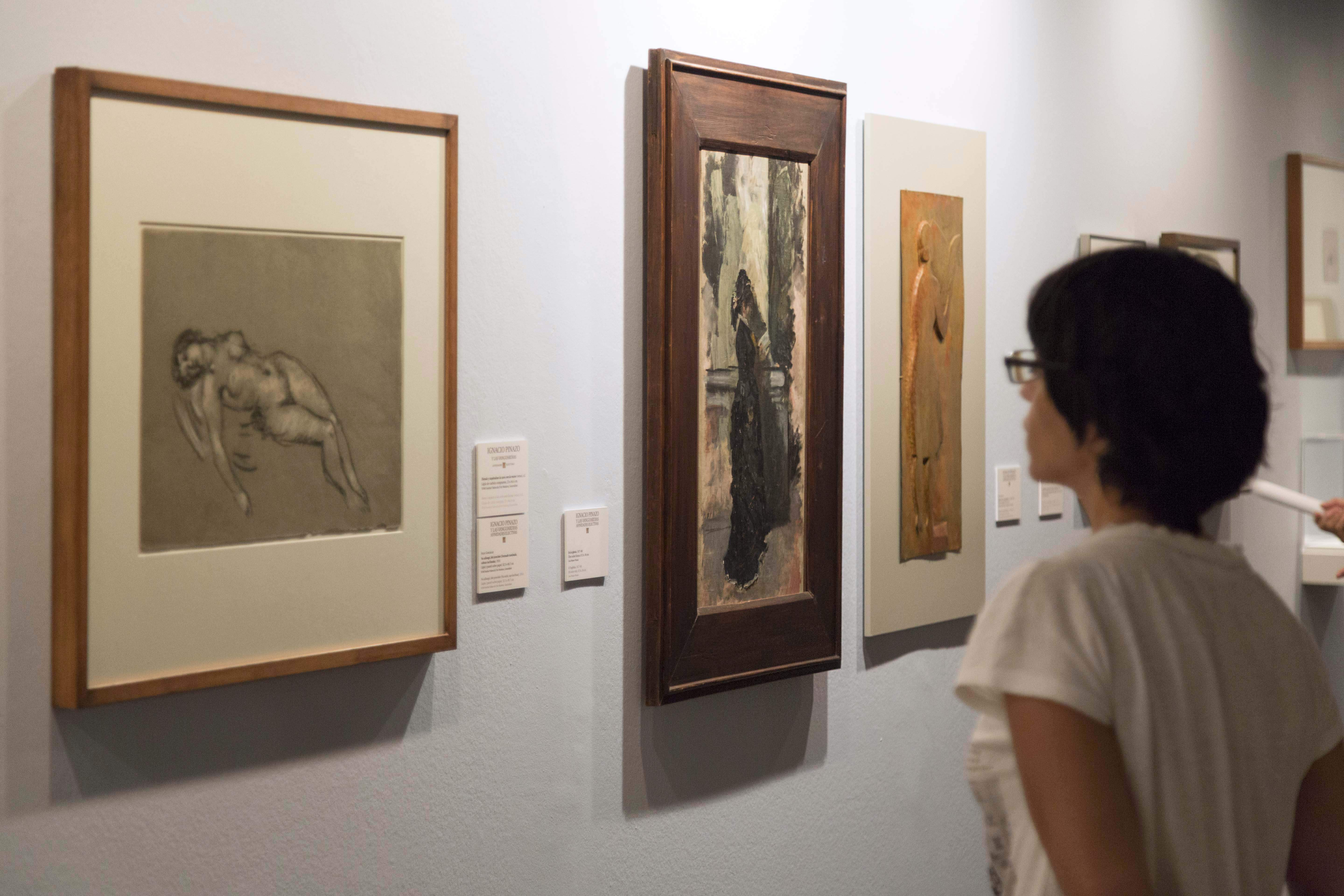 La muestra exhibe por primera vez algunos de sus dibujos realizados en academias romanas, tomados del natural, así como ejemplos de su arte decorativa, como es el caso de los techos del palacete de la familia Orellana.