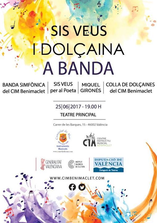 Ahora, con Sis veus i dolçaina a bandase ha procedido a la adaptación del espectáculo para banda sinfónica y dolçaina, en un proyecto musical impulsado por el Centre Instructiu Musical de Benimaclet conjuntamente con Consolat de Mar. En el mismo, han participado la Colla de Dolçaina del CIM de Benimaclet, nacida el año pasado de la mano de Miquel Gironès –antiguo miembro del grupo Obrint Pas–y que poco a poco ha ido consolidándose para elevar la dolçaina al nivel de instrumento de concierto y explorar sus posibilidades interpretativas y expresivas. También ha sido valedor Ildefonso Martos, músico inquieto y siempre en busca de nuevos retos que comanda la Banda Sinfónica del CIM de Benimaclet desde el año 2013 con un continuo logro de cuotas de calidad cada vez más elevadas.