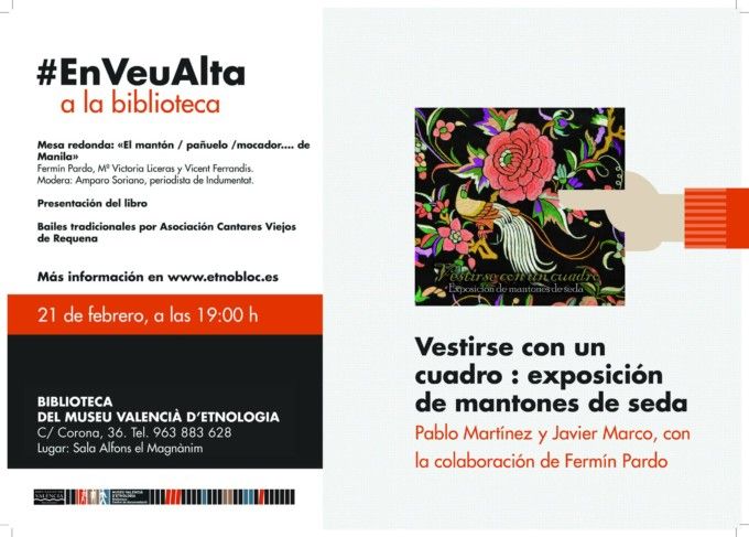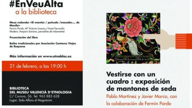 La Biblioteca del Museu Valencià d‘Etnologia celebra este próximo martes, 21 de enero, a las 19:00 horas, la segunda jornada del ciclo En Veu Alta a la Biblioteca 2017, con una mesa redonda y la presentación de un libro sobre la indumentaria tradicional valenciana y la historia y valor del conocido como mantón de Manila.