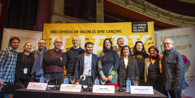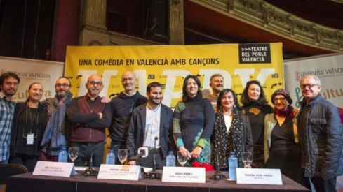 La diputada delegada de Teatros, Rosa Pérez Garijo, ha presentado en el Teatro Principal la comedia musical “Happy End”, una obra producida conjuntamente entre la Diputación de Valencia y CulturArts de la Generalitat, junto al conseller de Cultura y Educación, Vicent Marzà, el director de escena Salva Bolta y la actriz María José Peris.