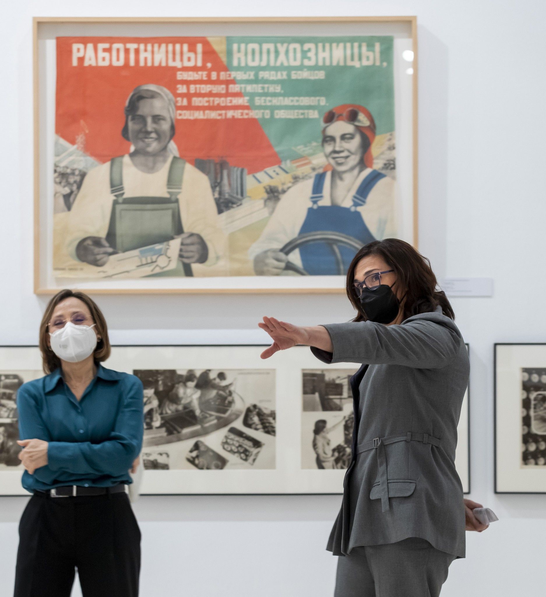 Del mismo modo, la exposición avanza mostrando temas relacionados con el tratamiento de las condiciones de trabajo femenino en las obras de las artistas Kulagina y Pinus, o de artistas contemporáneas como Inmaculada Salinas.